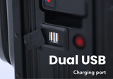 من أبرز مميزات هذه الحقيبة قدرتها على العمل كشاحن بطارية احتياطي. تم تجهيز الحقيبة بفتحتين لكابل USB يقعان بالقرب من زر التشغيل والإيقاف، مما يسمح للمستخدمين بشحن الأجهزة المختلفة بسهولة مع الاستمرار في استخدام Airwheel SE3T. تضمن هذه الميزة وظائف دون انقطاع، مما يتيح لك تشغيل أجهزتك أثناء قيام SE3T بمهامه.